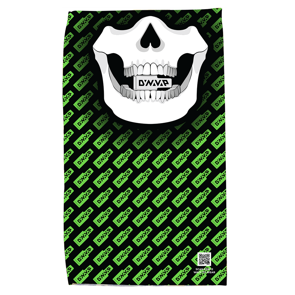 This soft and breathable dual purpose headwear is made from 100% polyester fabric and can be used in multiple ways. The print is done by dye-sublimation and features a skull face, from the nose down, with a Cap in the mouth. The other side features the slogan "Respect the Click" with the green DynaVap Cap logo pattern throughout. Use wet or dry, this tubular mask is perfect for anything!