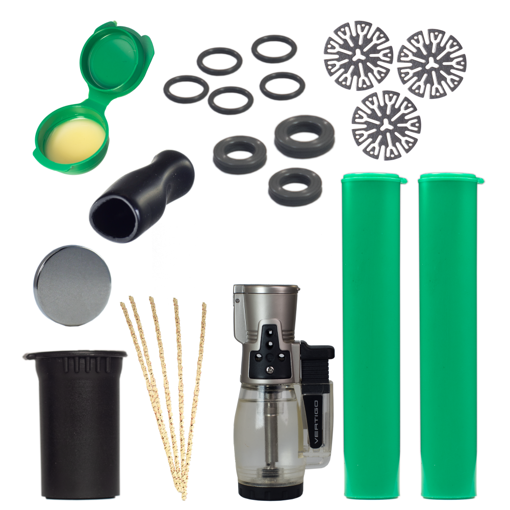 ชุดนี้ประกอบด้วยอุปกรณ์เสริมที่คุณจำเป็นต้องใช้เพื่อให้อุปกรณ์ DynaVap ของคุณใช้งานได้ดี ชุด Deluxe ประกอบด้วยรายการทั้งหมดใน Basic DynaKit และบางส่วน มีหน้าจอ CCD ไทเทเนียมระดับพรีเมียมรวมอยู่ด้วย พร้อมด้วย DynaMag ที่แข็งแกร่งซึ่งรวมไว้เพื่อให้การจัดการฝาครอบร้อนโดยไม่ต้องสัมผัส ไฟแช็กแบบคบเพลิงสามดวงจะให้ผลลัพธ์การทำความร้อนที่เหมาะสมที่สุด และเพิ่ม SnapStash สำหรับการจัดเก็บขนาดเล็กลง รายการสินค้าทั้งหมดที่รวมอยู่ใน DynaKit: Deluxe: